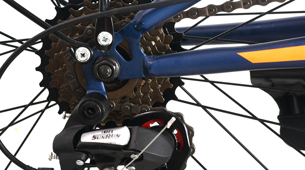 Xe đạp Fornix được trang bị bộ truyền động mạnh mẽ với 7 líp sau Index SunRun. Dây sên bền bỉ, linh hoạt giúp đảm bảo hệ thống vận hành trơn tru, ổn định. Bộ đề chuyển số mượt mà chỉ với 1 thao tác xoay tay đơn giản để bé điều chỉnh tốc độ phù hợp với lực đạp, giúp việc di chuyển dễ dàng và không tốn nhiều sức khi lên dốc.