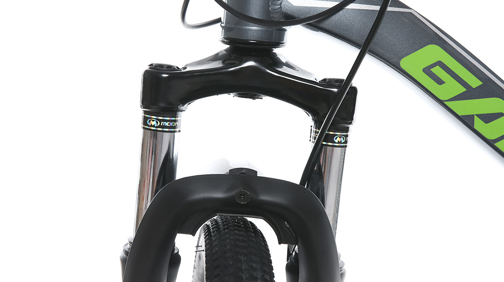 Phuộc MD-26 gắn ở phía bánh trước của xe đạp được làm bằng chất liệu thép cứng cáp, chịu lực tốt, có hành trình phuộc 40 mm - 45 mm đem đến khả năng giảm xóc tốt, hấp thụ xung lực hiệu quả.