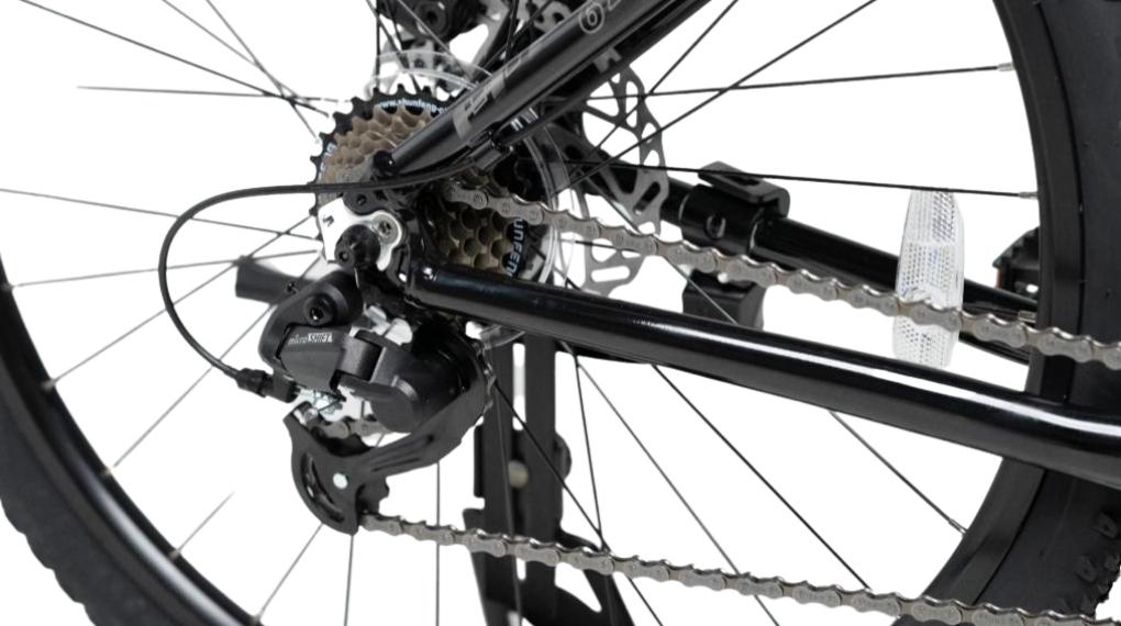 Sở hữu tay đề MicroSHIFT cùng bộ 3 đĩa và 7 líp MicroSHIFT kết hợp cùng sên xe KMC 7s, giò dĩa 24/34/42T từ hợp kim cho phép người lái sang số nhanh, chuyển tốc mượt mà khi đi qua những dạng địa hình khác nhau, nhờ đó tiết kiệm sức lực cho những hành trình dài.
