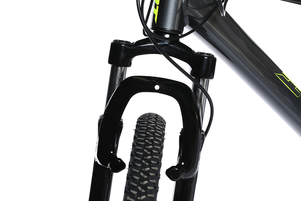 Xe được trang bị phuộc trước bằng hợp kim nhôm nhẹ nhàng, bền bỉ cho khả năng hấp thụ xung lực tốt, giảm xóc hiệu quả khi di chuyển trên các bề mặt gồ ghề.