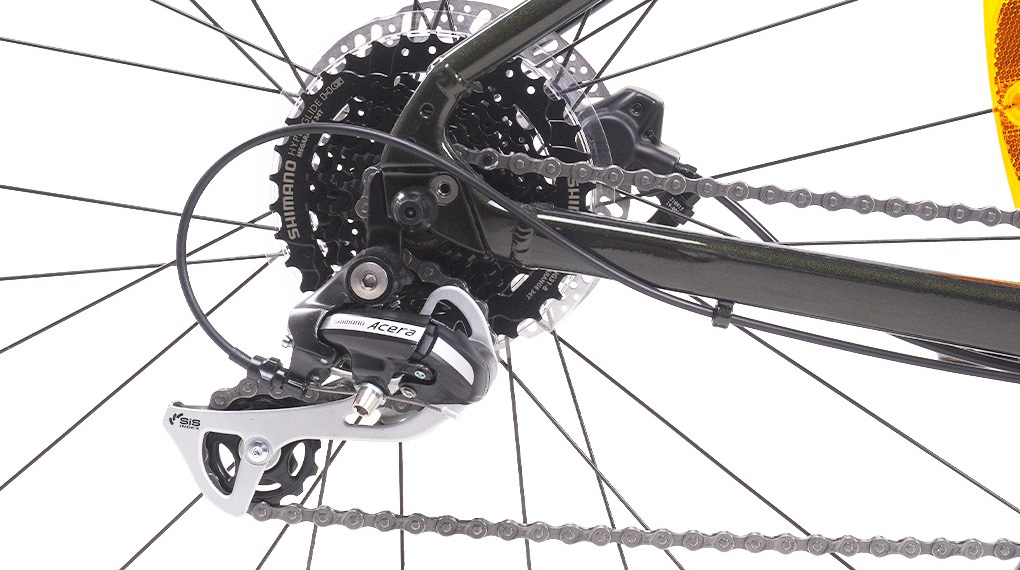 Được trang bị bộ 8 líp Shimano CS-HG31, 11x34, sên xe KMC Z8.3 và giò dĩa Forged alloy 30/46, chiếc xe đạp địa hình này có khả năng di chuyển linh hoạt trên nhiều dạng địa hình khác nhau, giúp bạn leo dốc ít tốn sức hơn.