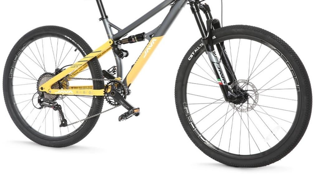 Xe đạp địa hình Java sử dụng cặp phuộc làm từ hợp kim nhôm với hành trình phuộc dài 120 mm giúp giảm xóc hiệu quả khi đạp xe qua các khu vực có địa hình gồ ghề, nhiều sỏi đá.