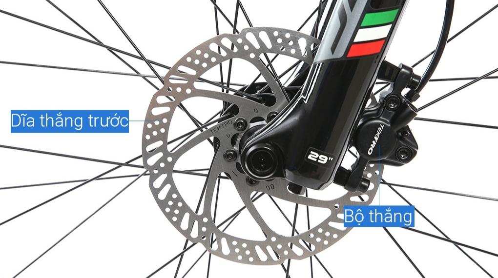 Người lái có thể an tâm di chuyển trên các đoạn đường núi nhiều khúc cua, tự tin và an toàn xử lý những tình huống bất ngờ nhờ hệ thống phanh đĩa thủy lực với bộ thắng và tay thắng Tektro HD-M275 hoạt động nhanh và nhạy, lực hãm mạnh đồng thời có khả năng hoạt động ổn định trong mọi điều kiện thời tiết.