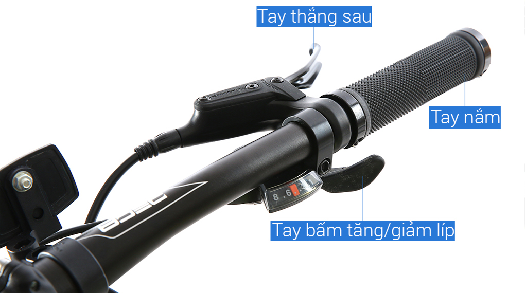 Phần tay lái làm từ hợp kim nhôm có thiết kế không sừng giúp xe di chuyển thuận lợi hơn khi vào khúc cua, đường nhỏ hẹp. Bên cạnh đó, tay cầm được bọc cao su chắc chắn tạo độ ma sát tốt, giúp người dùng cầm nắm chắc chắn và không bị trượt tay khi ra mồ hôi hay trời mưa.