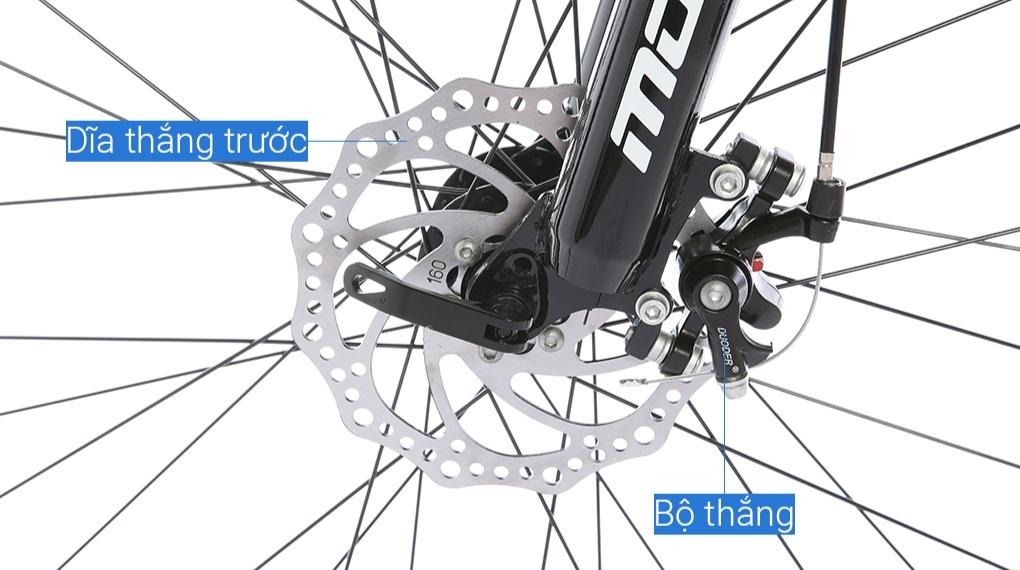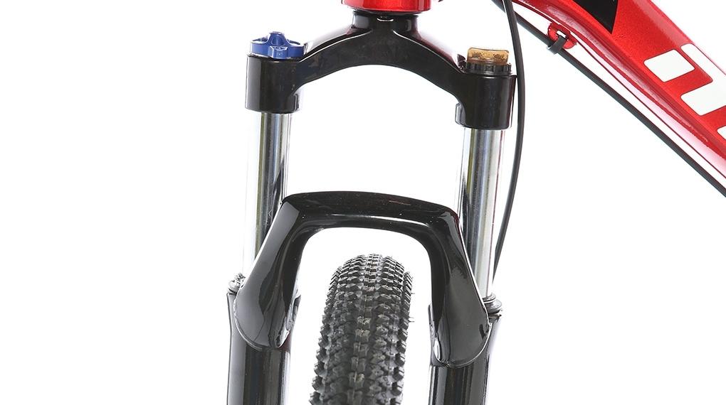 Phuộc trước của mẫu xe đạp địa hình này có hành trình dài 60 - 80 mm, chất liệu hợp kim cứng cáp, giảm xóc nảy tốt khi di chuyển qua các đoạn đường gồ ghề, nhiều sỏi đá.