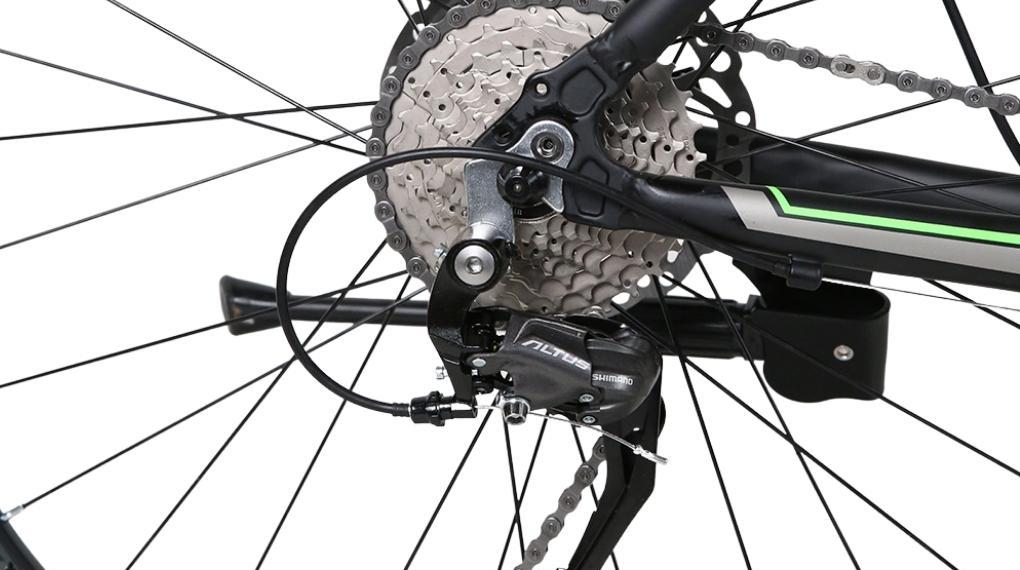 Xe được trang bị bộ truyền động gồm bộ 3 đĩa Shimano FD-M370, sên xe KMC C9 và bộ líp 9 tầng China CS-M2009 mang lại khả năng vận hành mạnh mẽ, sang số, chuyển tốc dễ dàng cho trải nghiệm thú vị mà không tốn quá nhiều sức.
