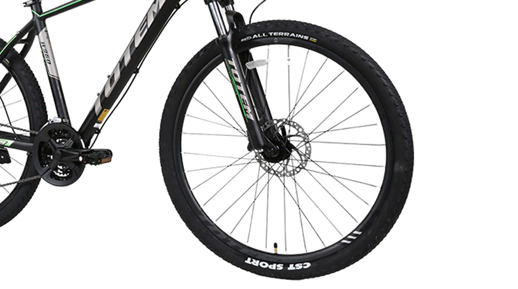 Bánh xe có đường kính 27.5 inch, vành xe Stars J19SF dày 20.5 mm kết hợp với đùm Joytech D471SBT/D472SBT và lốp CST Sport có nhiều gai giúp bánh xe di chuyển linh hoạt, chống trơn trượt trên mặt đường ẩm ướt.