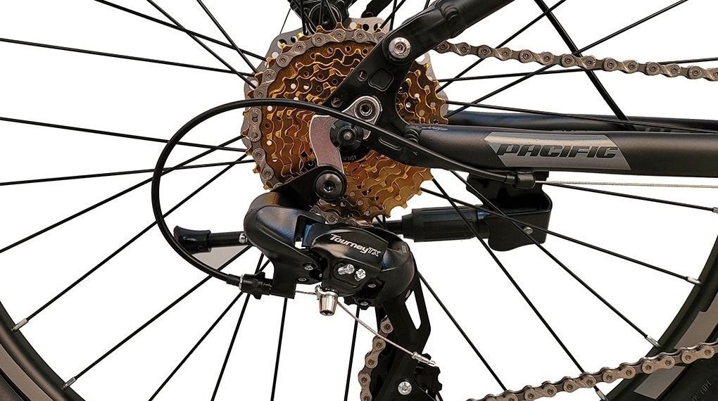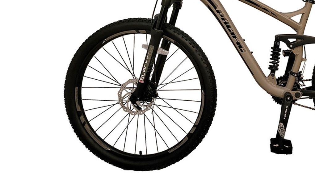 Xe đạp Pacific sở hữu cặp phuộc trước, sau từ hợp kim cứng cáp, có hành trình phuộc dài 100 mm cho khả năng hấp thụ xung lực tốt, giảm xóc hiệu quả khi xe đi vào các đoạn đường không bằng phẳng, nhiều sỏi đá.