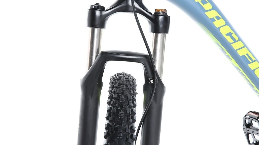 Cặp phuộc giảm xóc trước chuyên dùng cho dòng xe đạp địa hình làm bằng hợp kim có hành trình phuộc 100 mm hỗ trợ giảm xóc tốt, giúp xe vận hành êm ái. Bên cạnh đó, khóa hành trình tích hợp cho phép cố định giảm xóc khi đi đường bằng, tối ưu hiệu quả đạp và tốc độ.