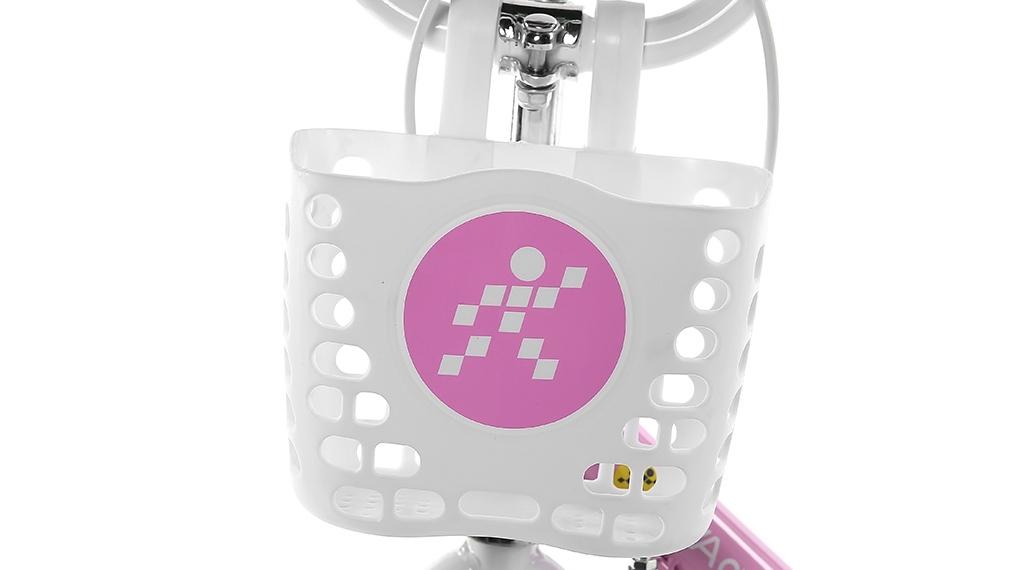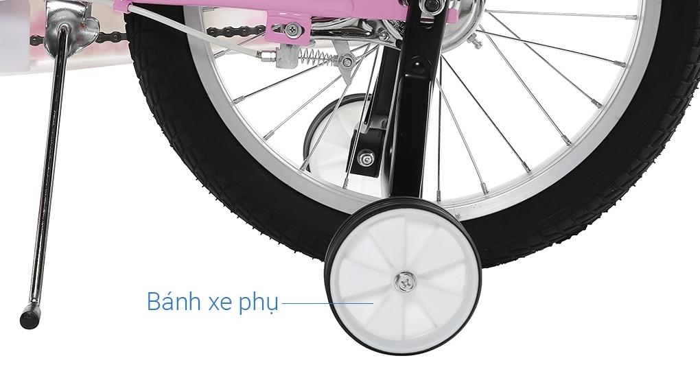 Ngoài bánh phụ hỗ trợ thăng bằng cho các bé tập lái, chiếc xe đạp này còn được trang bị giỏ đi kèm giúp bé có thể mang theo nhiều vật dụng cần thiết cho những chuyến khám phá của mình và chân chống giúp cố định xe khi tháo rời bánh phụ.