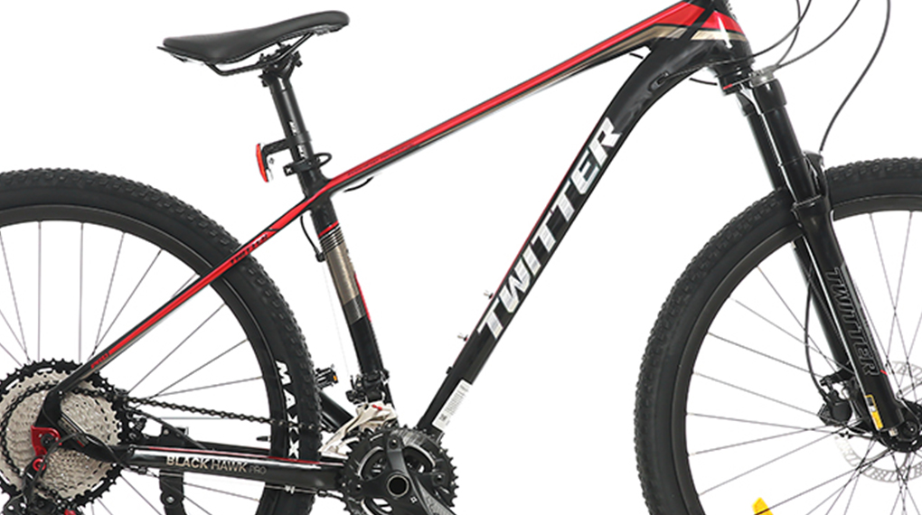 Xe đạp địa hình MTB Twitter Blackhawk Pro (QR) RS-2*13S 27.5 inch Size M có vẻ ngoài cá tính, năng động. Với khối lượng chỉ 12.5 kg cùng nhiều phiên bản màu cá tính (các phiên bản màu còn hàng tùy khu vực, bài viết sử dụng phiên bản màu đen đỏ để minh họa cho sản phẩm), mẫu xe phù hợp với các bạn trẻ có mong muốn leo núi và rèn luyện sức khỏe.