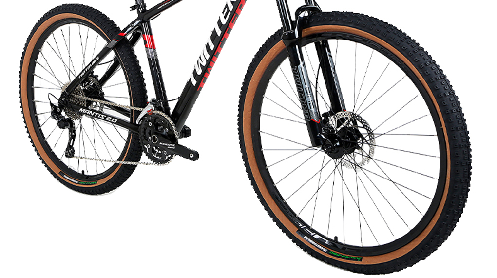 Xe đạp địa hình Twitter được trang bị bánh 27.5 inch tiêu chuẩn, phù hợp với người dùng cao từ 155 - 170 cm, vành Mantis 2.0 cùng căm xe Stainless steel cứng cáp giúp hạn chế móp méo khi va chạm. Lốp Innova-Pro hoặc Kenda (tùy đợt hàng) có nhiều gai hạn chế trơn trượt khi di chuyển qua các đoạn đường ẩm ướt.