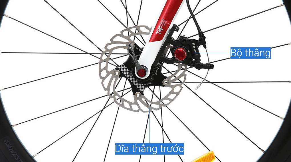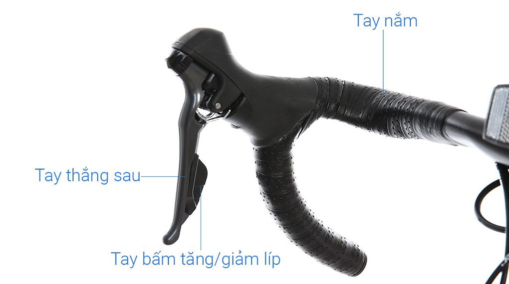 Xe đạp được trang bị hệ thống phanh đĩa trước sau với tay thắng Shimano-Claris/R2000-16S​ mượt mà, không cần lực bóp lớn, khả năng phản hồi nhanh nhạy, đảm bảo sự an toàn của người lái khi di chuyển với tốc độ cao.