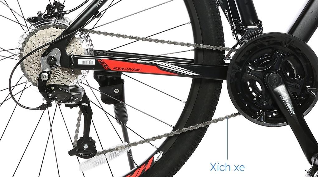 Chiếc xe đạp địa hình này sở hữu bộ 3 đĩa FD-V5009L và 9 líp sau XDS-7 đi cùng với sên C9 và giò dĩa Prowheel tạo nên hệ thống truyền động mạnh mẽ, đa tốc độ, phù hợp với nhiều chặng đường khác nhau.