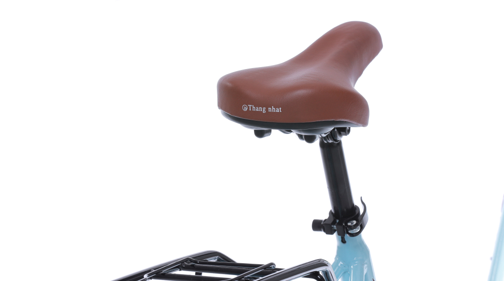 Yên xe có phần cốt yên được làm bằng chất liệu inox sáng bóng, chống hoen gỉ và bền bỉ theo thời gian. Không những thế, yên xe đạp còn được bọc nệm da nâu tinh tế, mang lại cảm giác thoải mái và dễ chịu cho bạn khi ngồi.