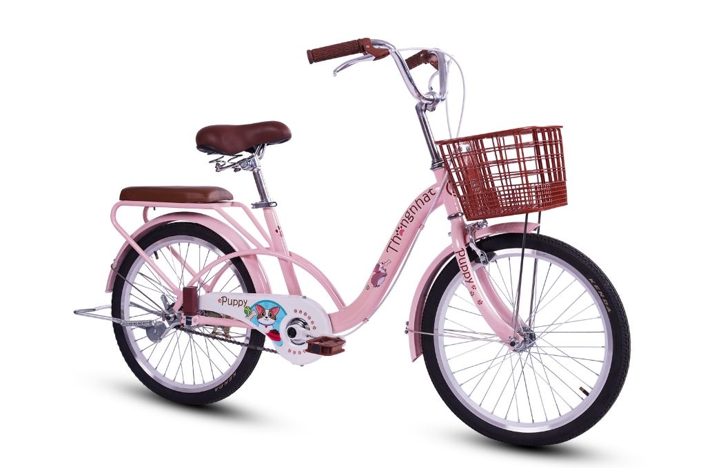 Xe đạp trẻ em nữ Thống Nhất Puppy 20 inch Hồng với khung thép sơn tĩnh điện, hệ thống phanh an toàn, yên êm ái và nhiều tiện ích đi kèm là lựa chọn lý tưởng cho bé từ 6 đến 10 tuổi. Thiết kế thân thiện, chất liệu bền tốt cùng các tính năng hỗ trợ toàn diện giúp bé thoải mái và an toàn trên mọi hành trình.