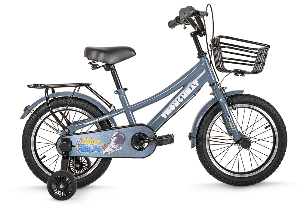 Xe đạp Thống Nhất với kiểu dáng và màu sắc xanh đẹp mắt, họa tiết phi hành gia cùng dòng chữ “Outer Space” ngay vị trí đĩa xích tạo điểm nhấn rõ nét. Xe đạp phù hợp cho trẻ từ 2 đến 4 tuổi với chiều cao khuyến nghị từ 80 - 100 cm.